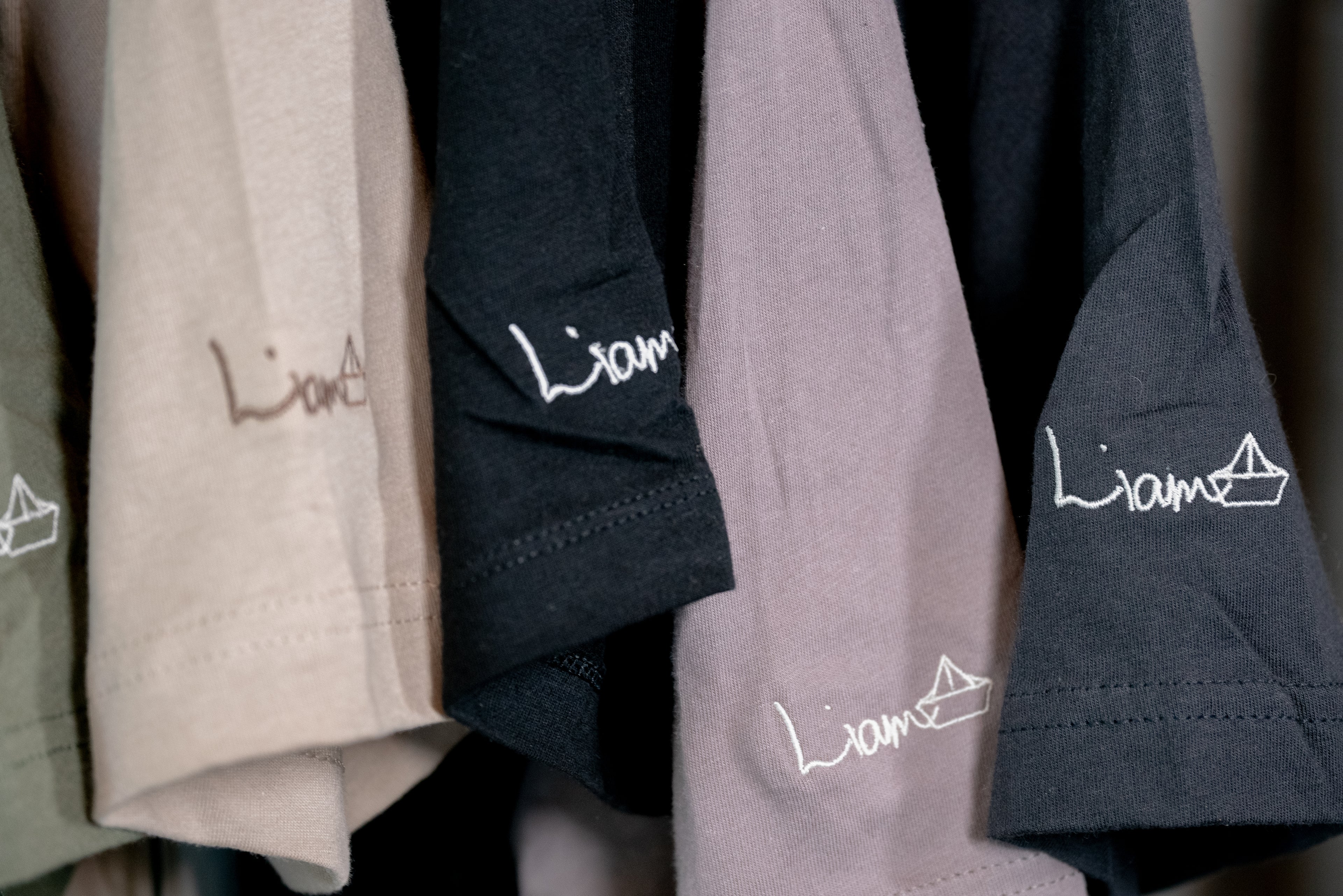 One of Liam’s unique traits was his incredibly neat handwriting, something he was known for from a young age. This design, taken directly from his grade 9 social studies test, showcases his true, everyday handwriting—the way he wrote his name.