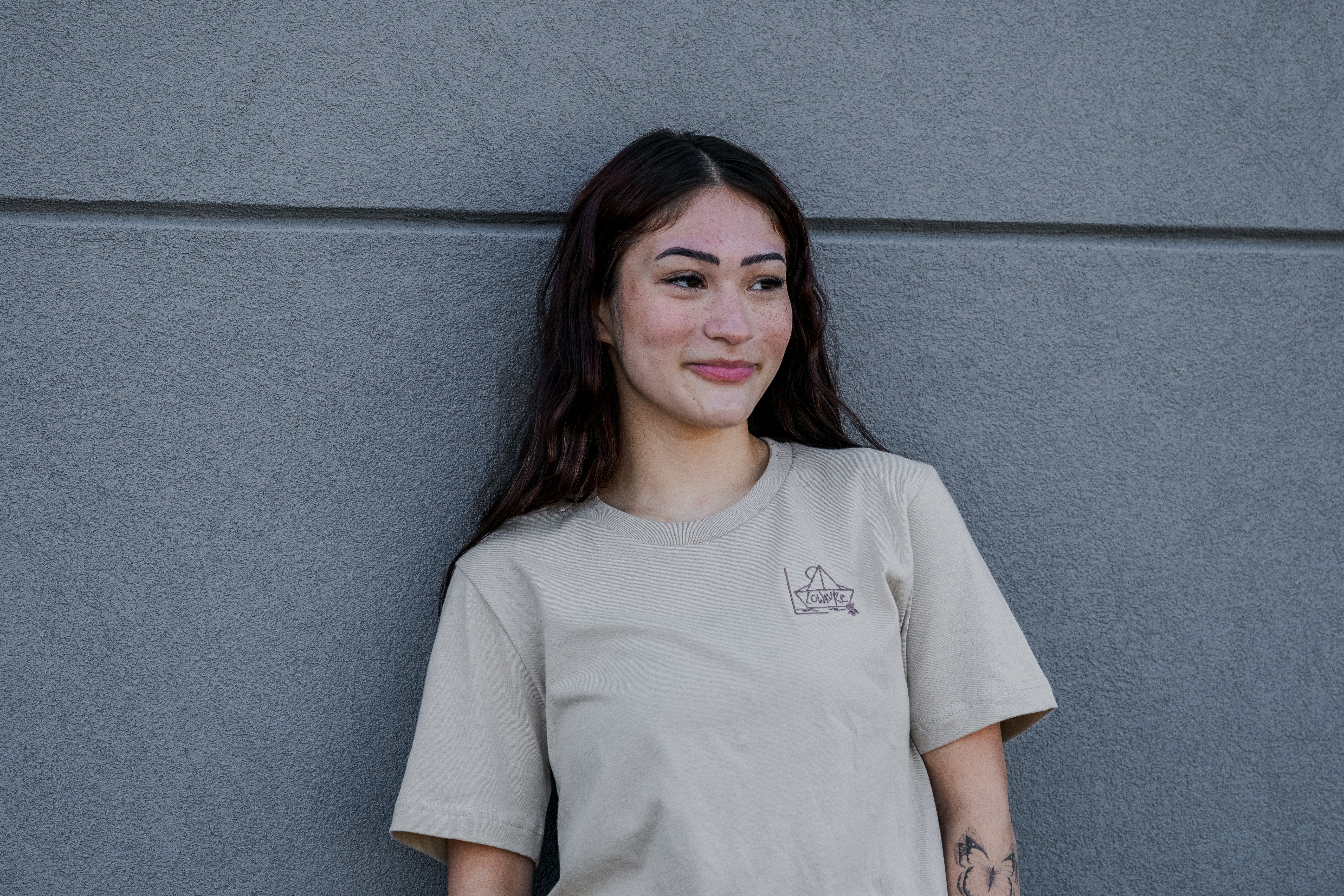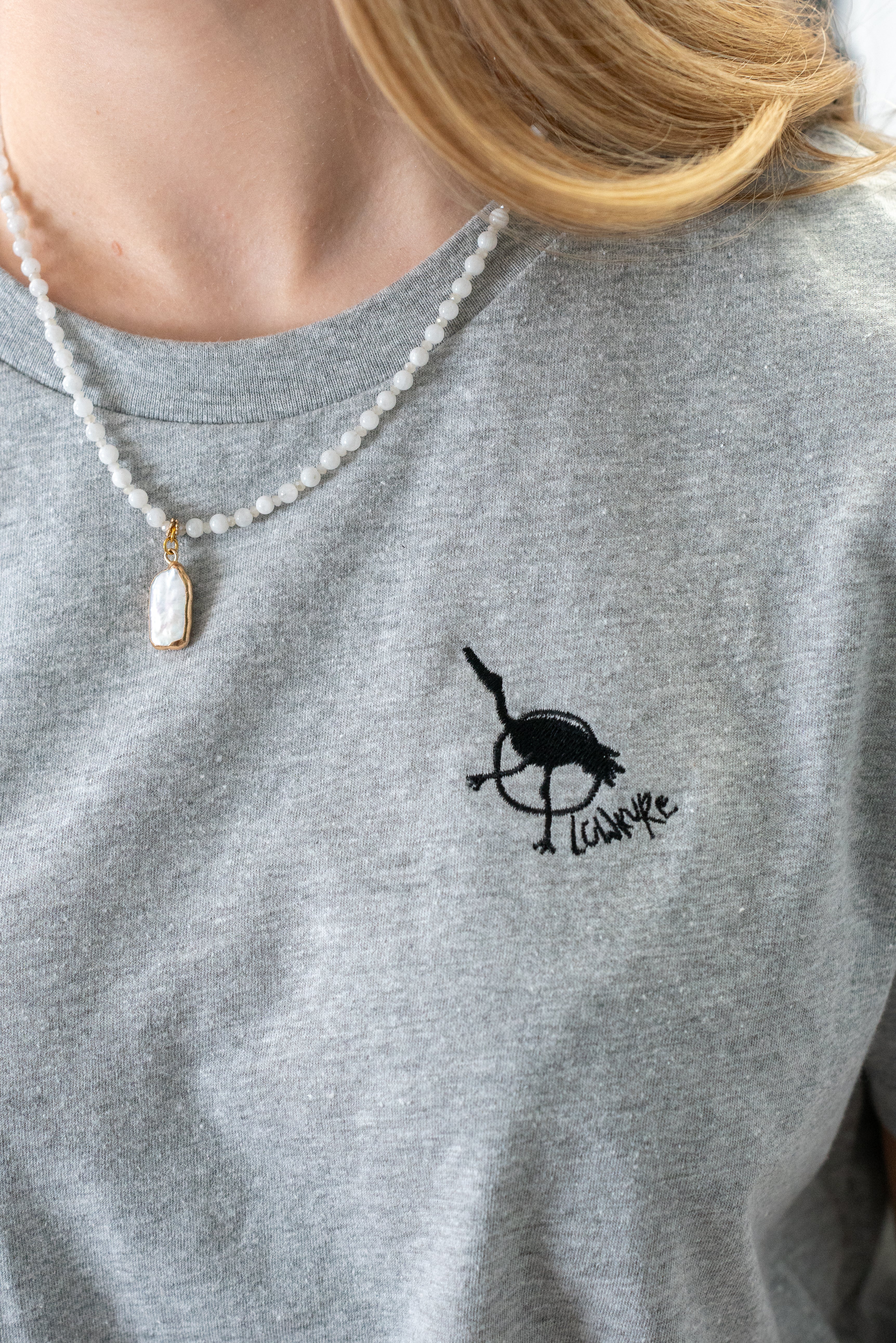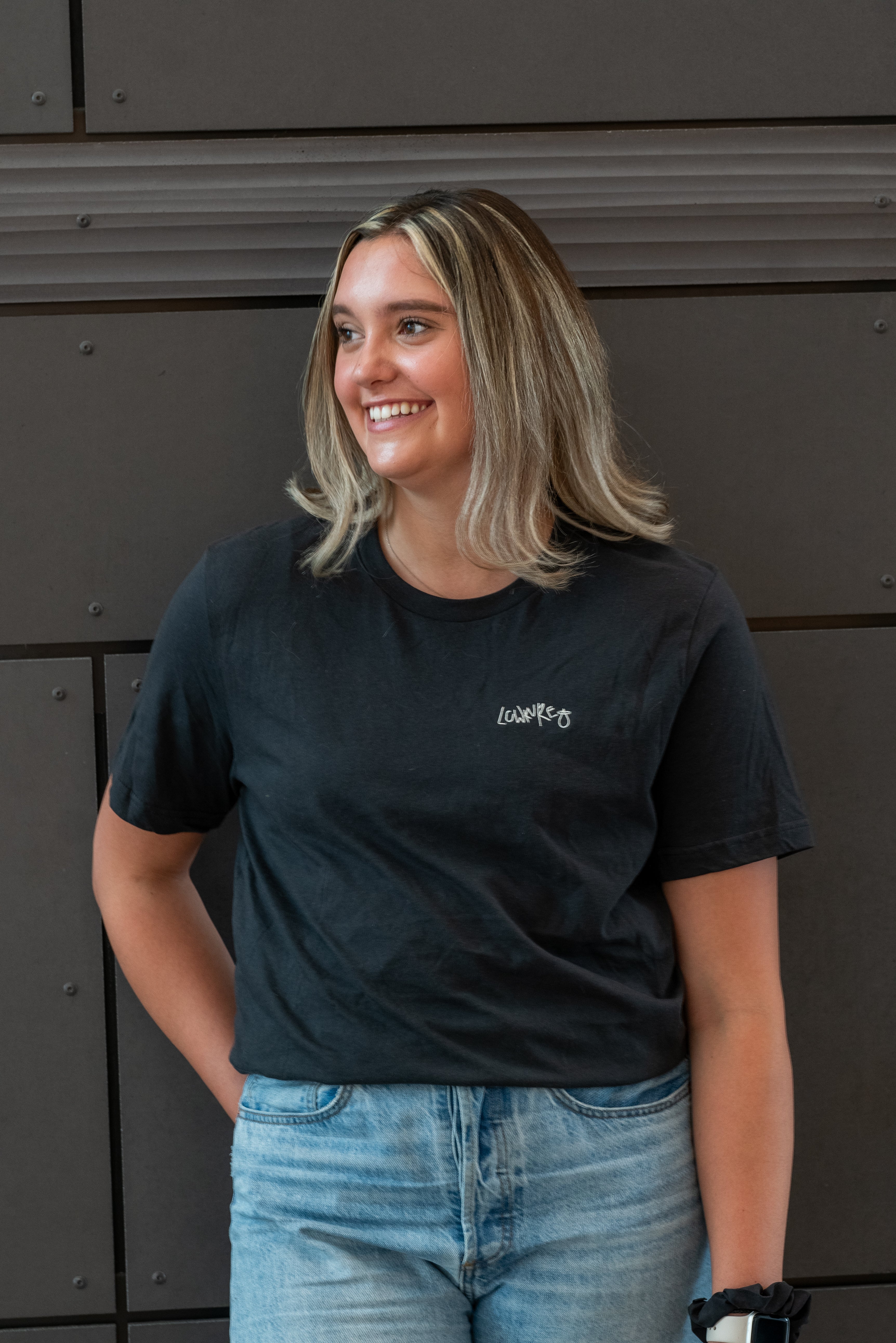 Woman's Relaxed Fit Crew Neck T-Shirt - CHARCOAL GREY | LowKure Tearlight Logo