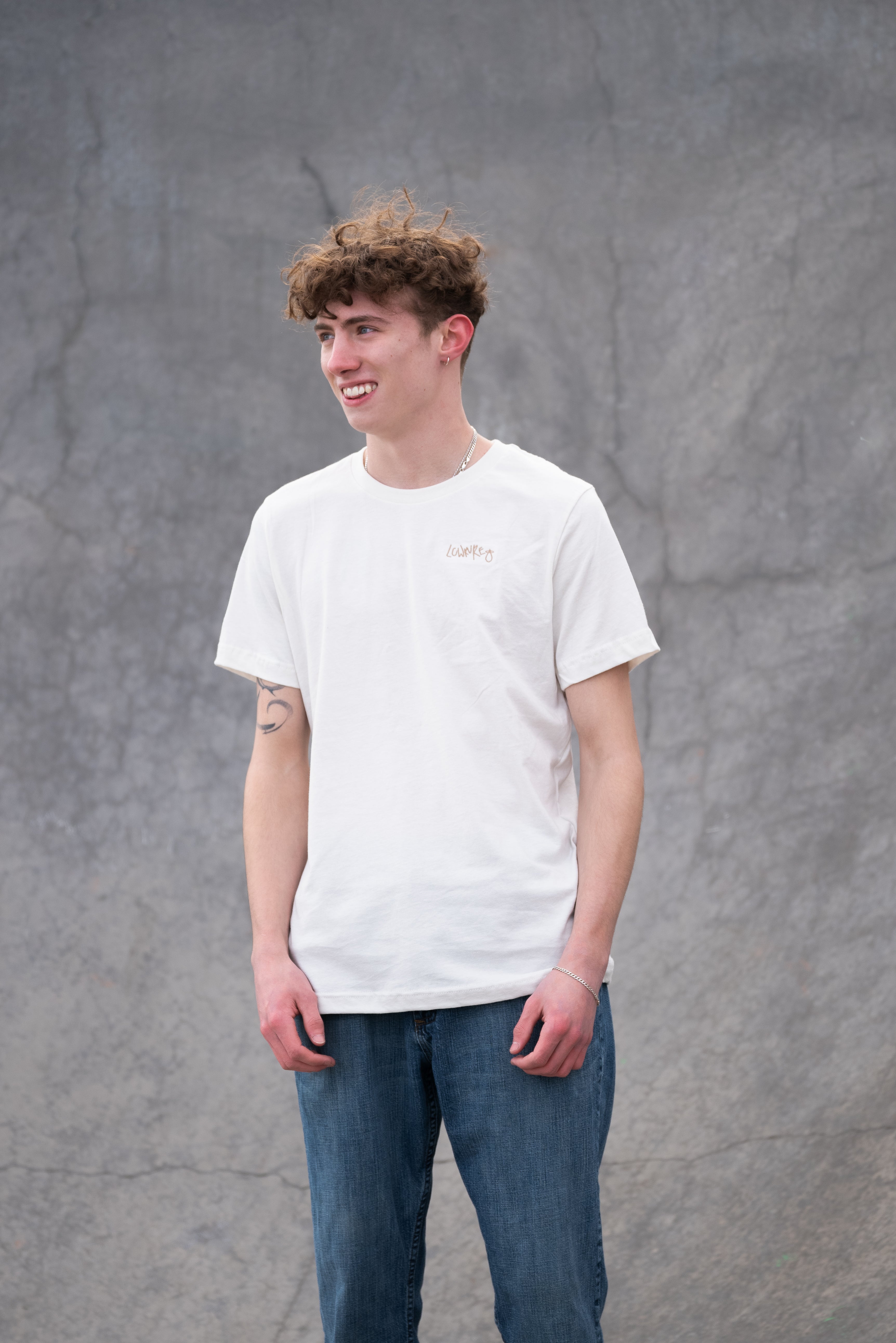 Men's / Unisex Crew Neck T-Shirt - SOFT CREAM | LowKure Tearlight Logo